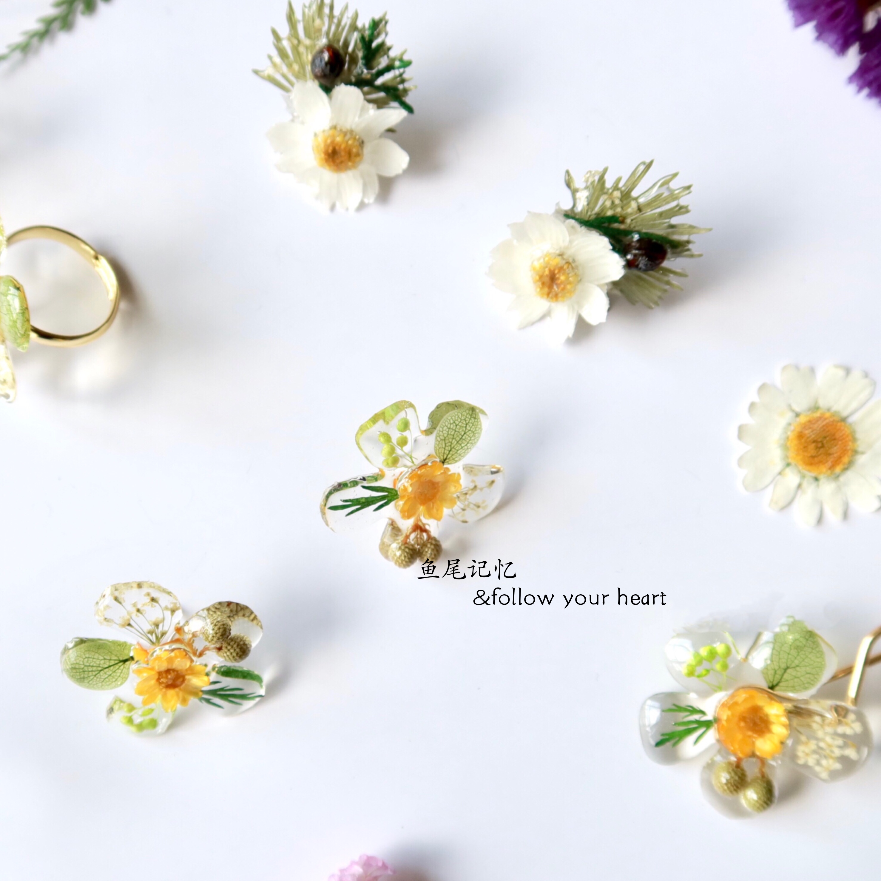 鱼尾记忆/花的嫁纱 原创设计手作真花干花永生花复古耳钉耳夹