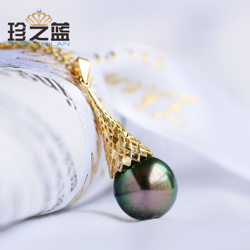 香港设计师款 大溪地黑珍珠吊坠18K金海水珍珠项链坠精品孔雀绿色热门设计联盟服务商