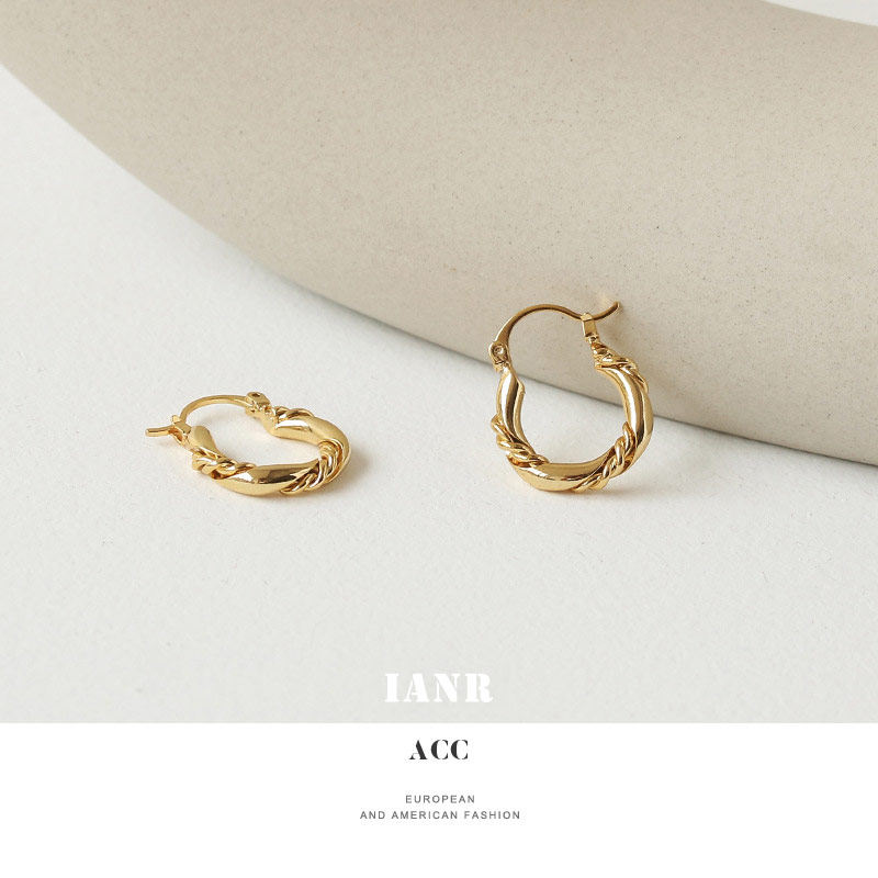 欧美扭曲圆环耳扣 ins极简质感冷淡小众设计感镀真金耳圈耳环耳饰热门设计联盟服务商